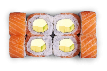 Рис, нори, авокадо, сыр сливочный, лосось.